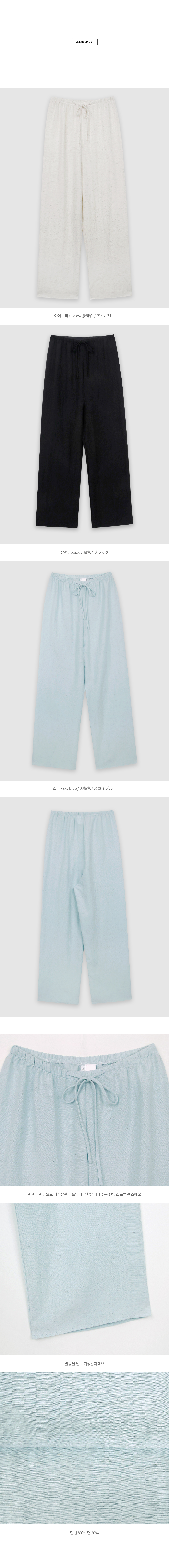 린넨 블렌딩으로 내추럴한 무드와 쾌적함을 더해주는 밴딩 스트랩 팬츠