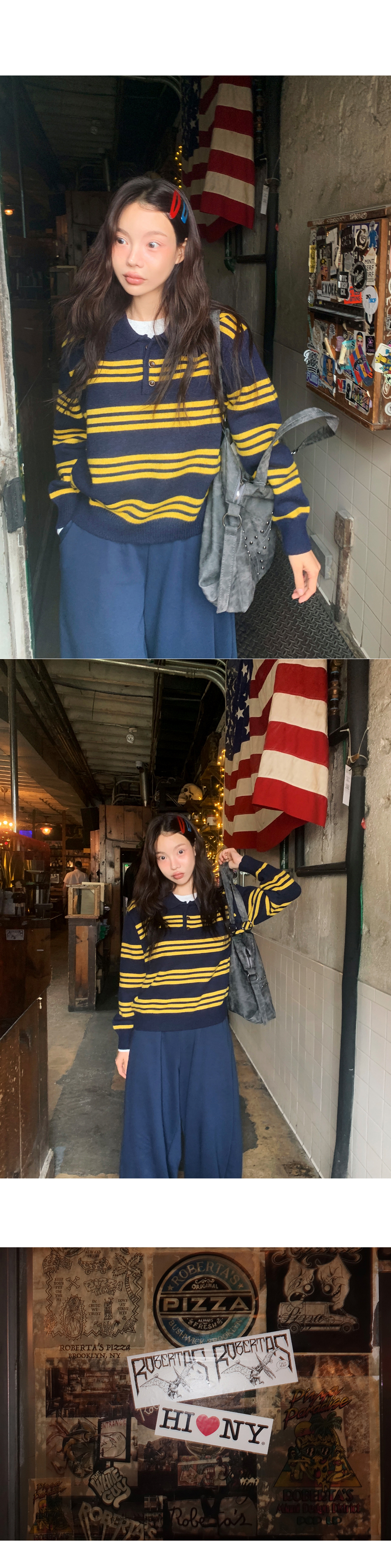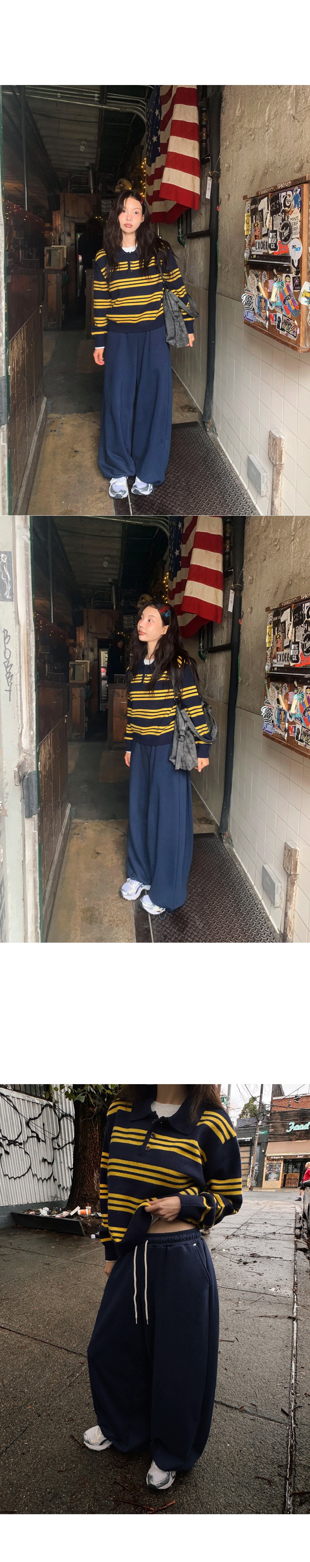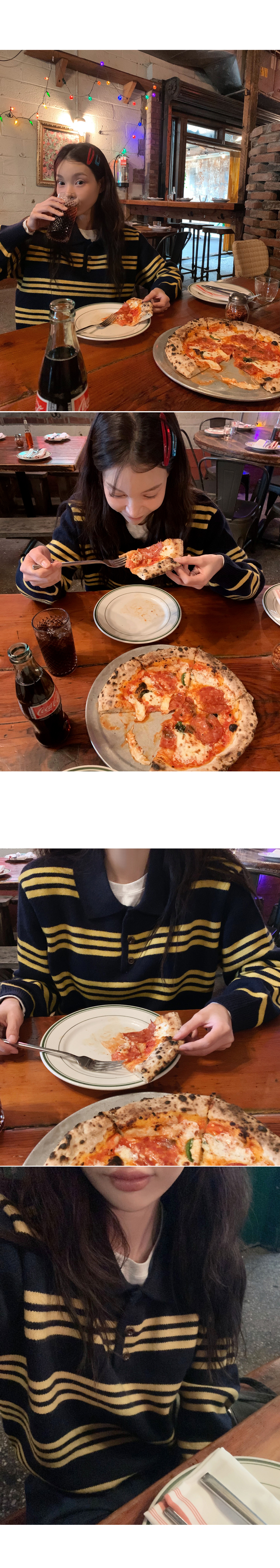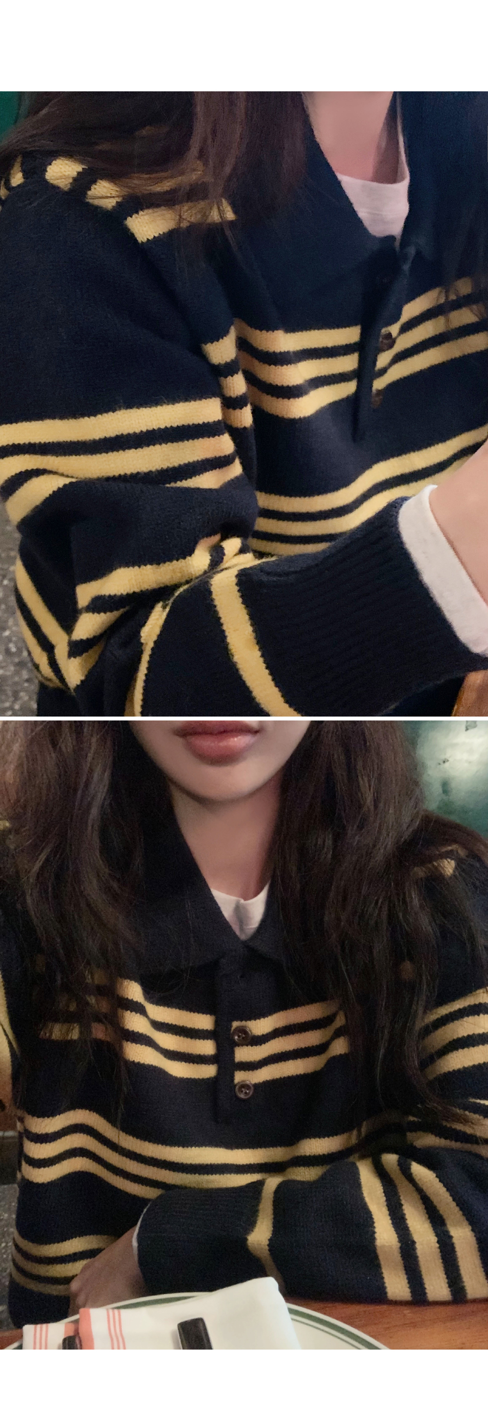 # 데일리로 입기 좋은 버튼 카라 단가라 니트