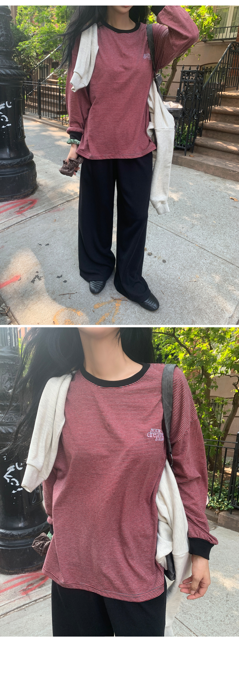 “골반은 평균이며 엉덩이가 작고 하의는 S사이즈를 입어요. 다리가 긴 편이라서 짧 은 기장감의 하의는 M사이즈도 입어요. 상의는 어깨가 있는 편이고 가슴사이즈는75C입니다.”
