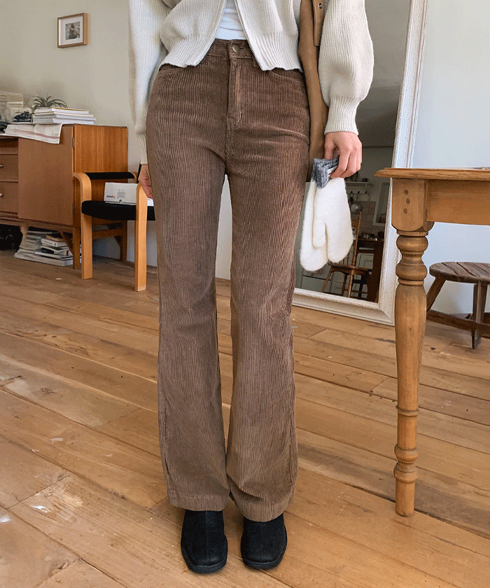 잔잔한 골덴 원단으로 고급스럽고 포근하게 만들어진 코듀로이 부츠컷 팬츠! 데일리, 포멀 등 다양한 무드로 입기 좋은 팬츠에요