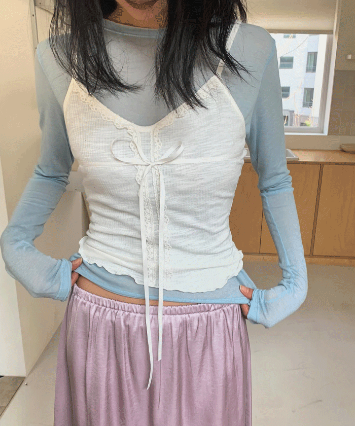 레이스와 리본이 포인트가 되는 골지 끈나시