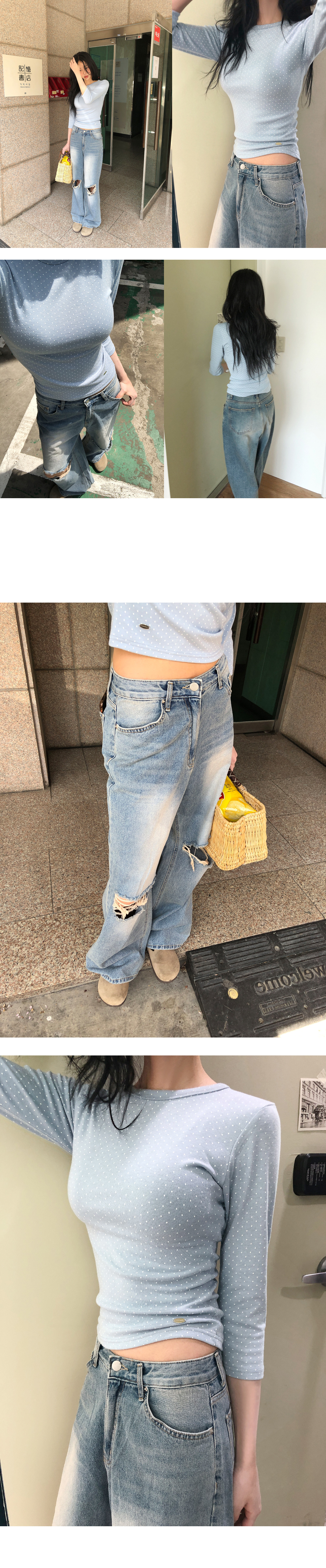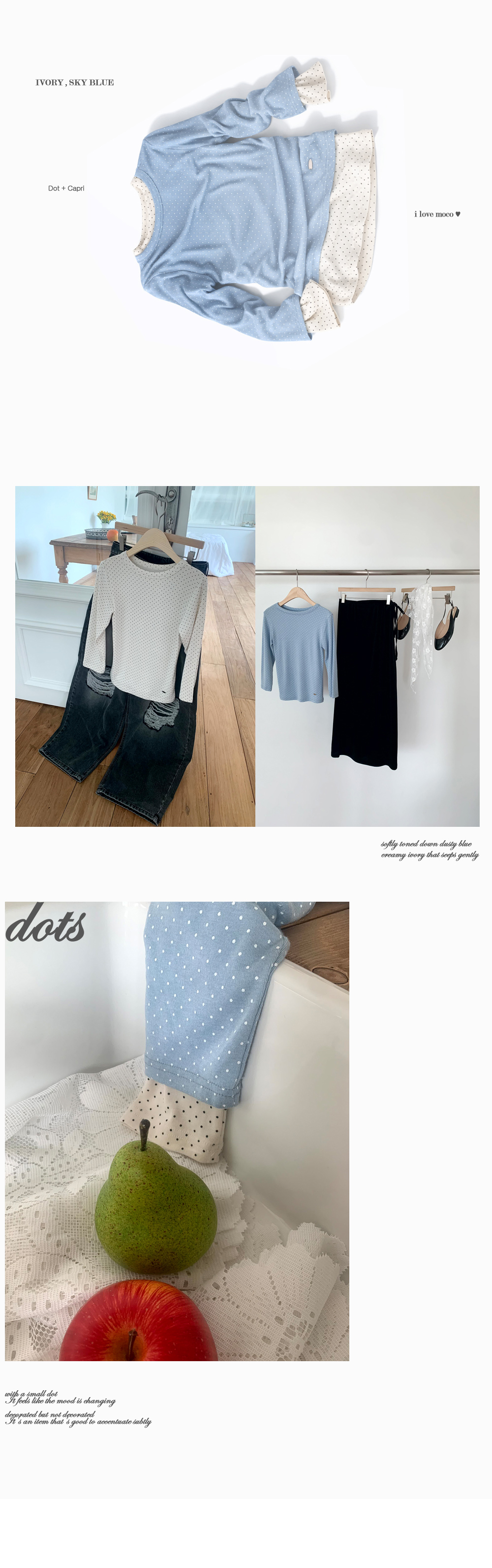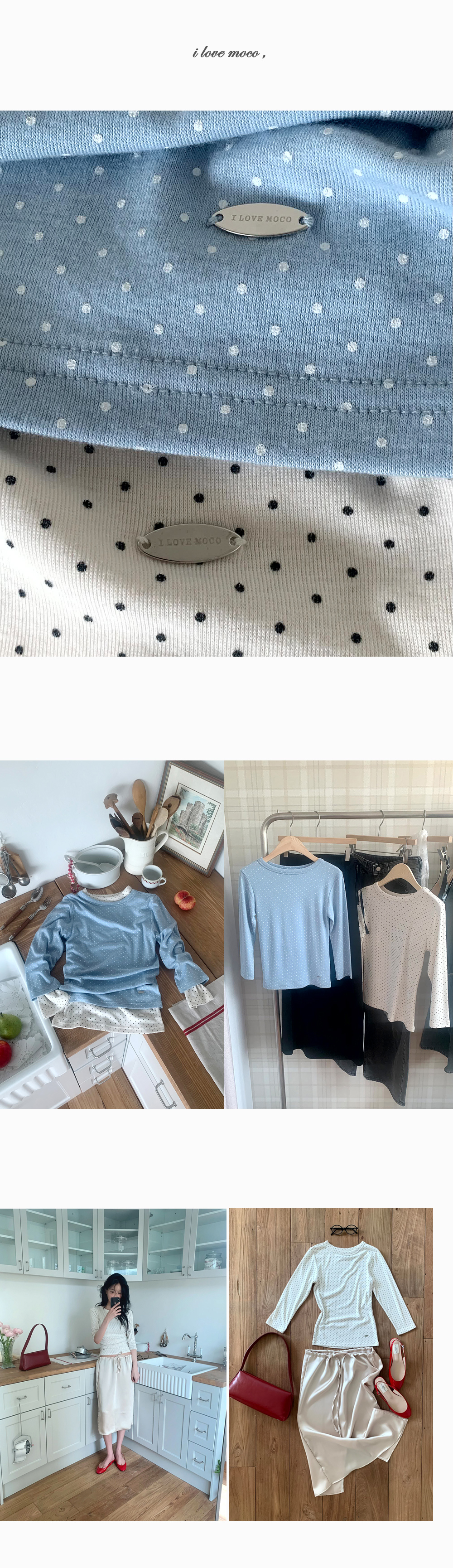 도트 패턴으로 포인트를 준 귀여운 무드의 알럽모코 7부 티셔츠